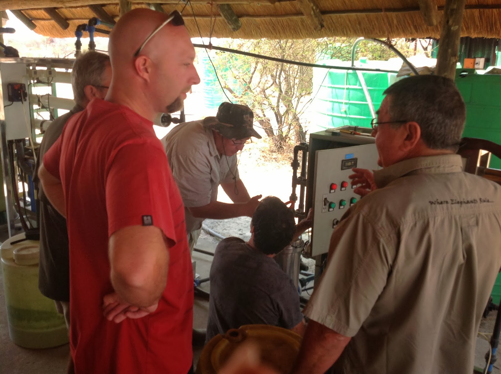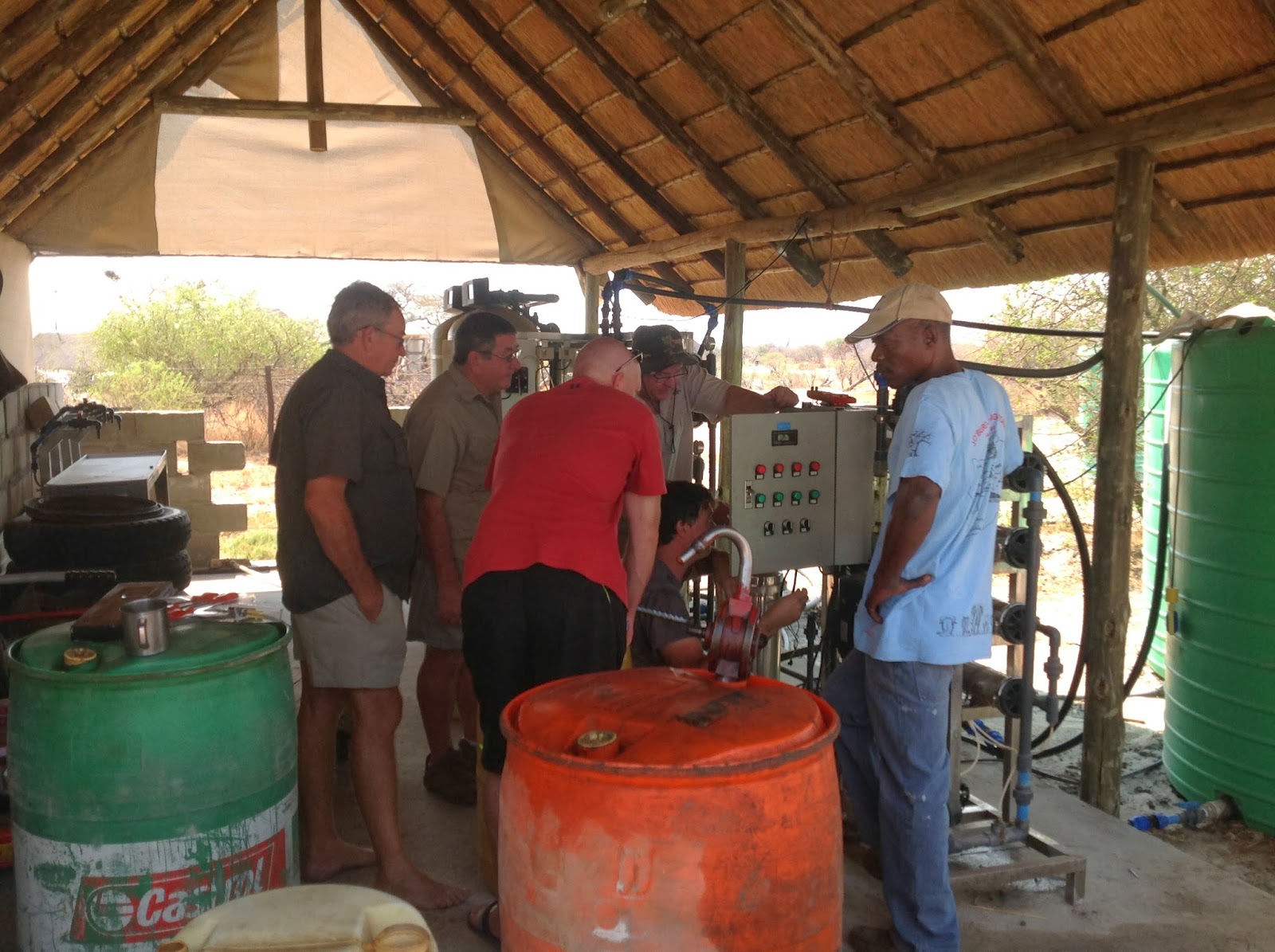 Today was Hunters Road day. The one day we were all looking forward to. For many this was their first trip on this magical road. We all agreed to leave at 9:00 but just as we were checking out and paying our bills word came through that Malan and Johan were on their way and that the water leak problem were solved. We had to postpone our departure to 11:30 which gave us some time to eat a nice breakfast in the restaurant after which Bulletjie aka Rulof and Ray helped oom Ben fixing a Electric problem on the water purifier plant.