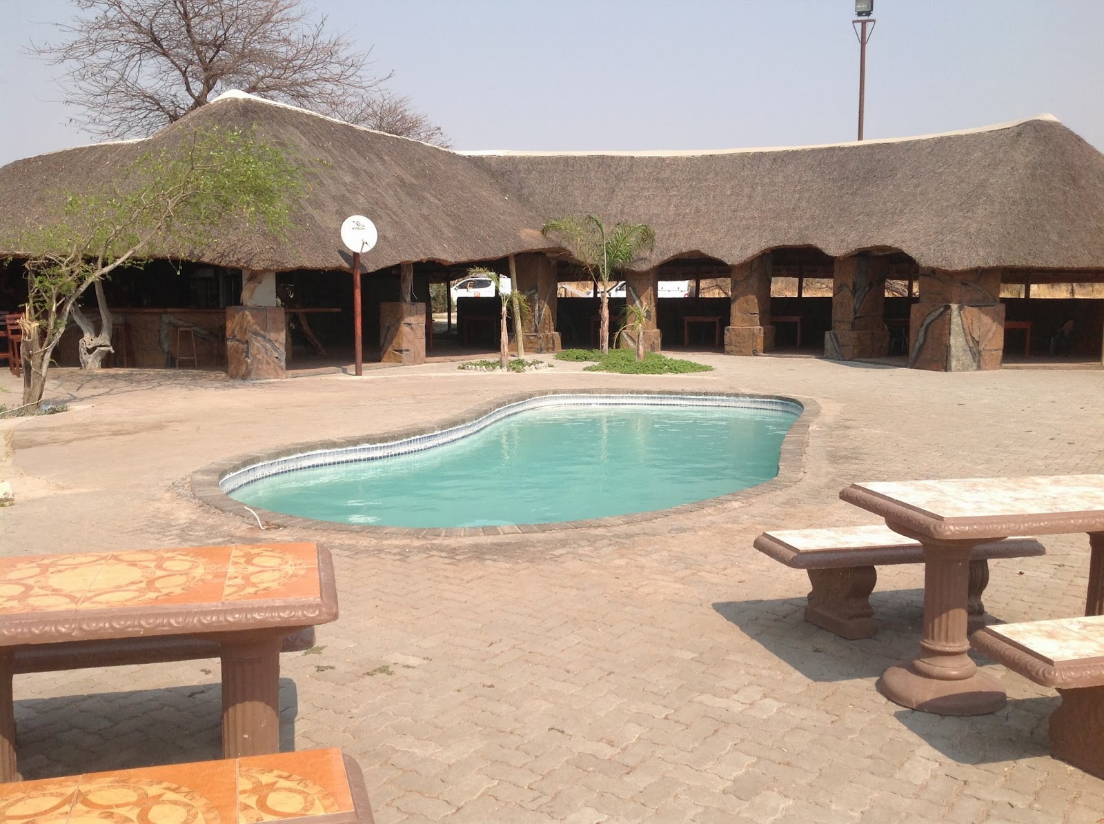 After fueling up, pumping tires and regrouping some of us decided to go have a swim and some cold beers at Chobe Safari Lodge while the rest opted to go directly to Senyati.