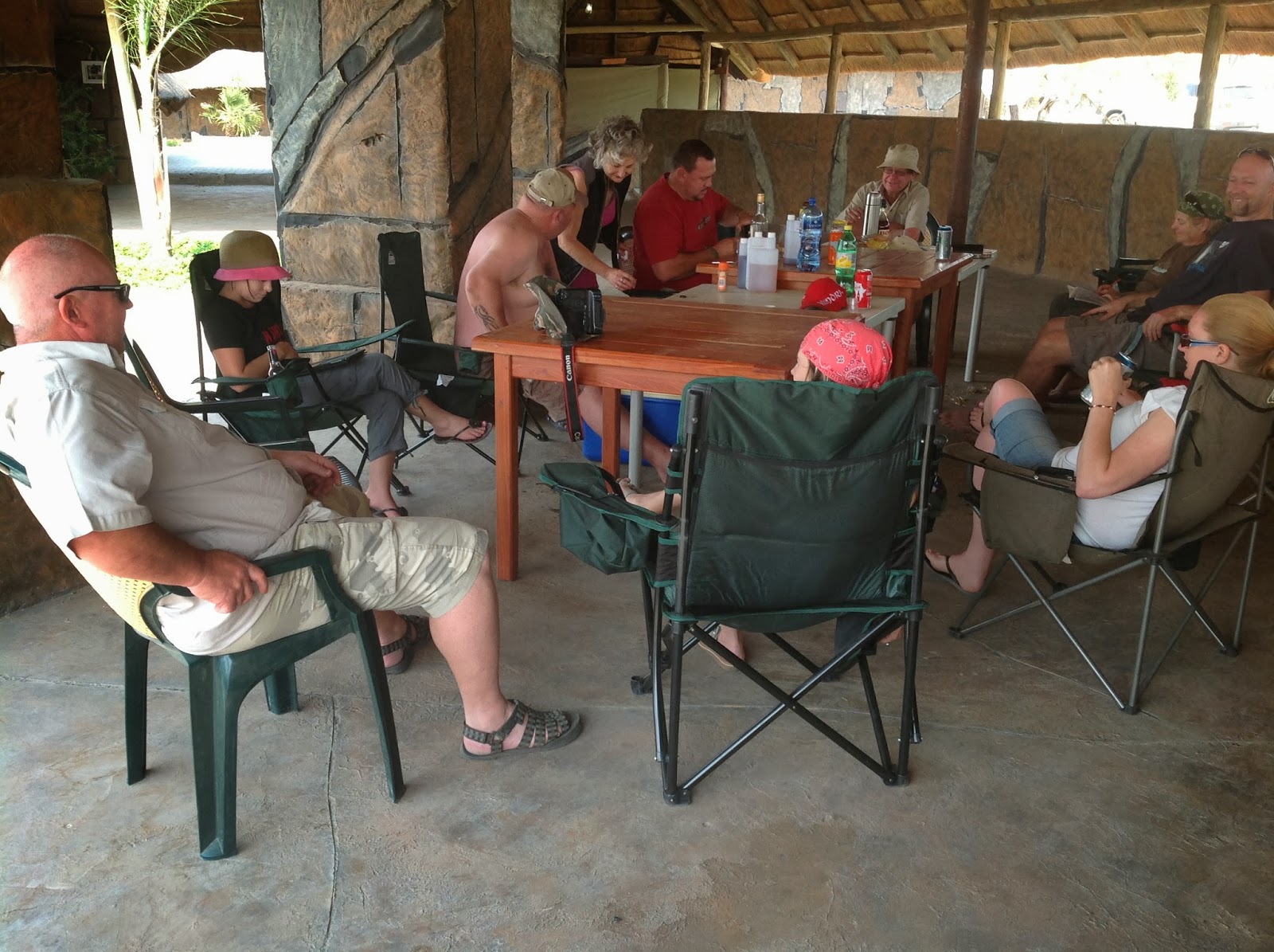 The bar and pool area at Elephant Sands where we braaied, held court, made potjie and relaxed. All this for only 85 Pula per day per person and children half price. Elephants are coming and going through out the day and night and its a very special feeling being so close to real wild elephants.