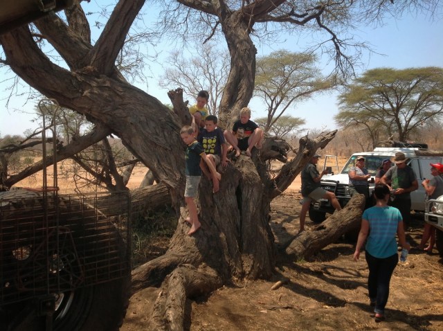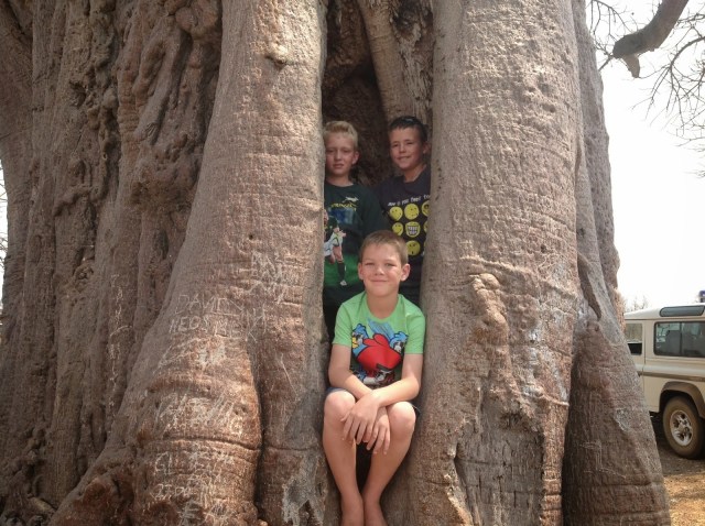 The boys playing in the big Baobab