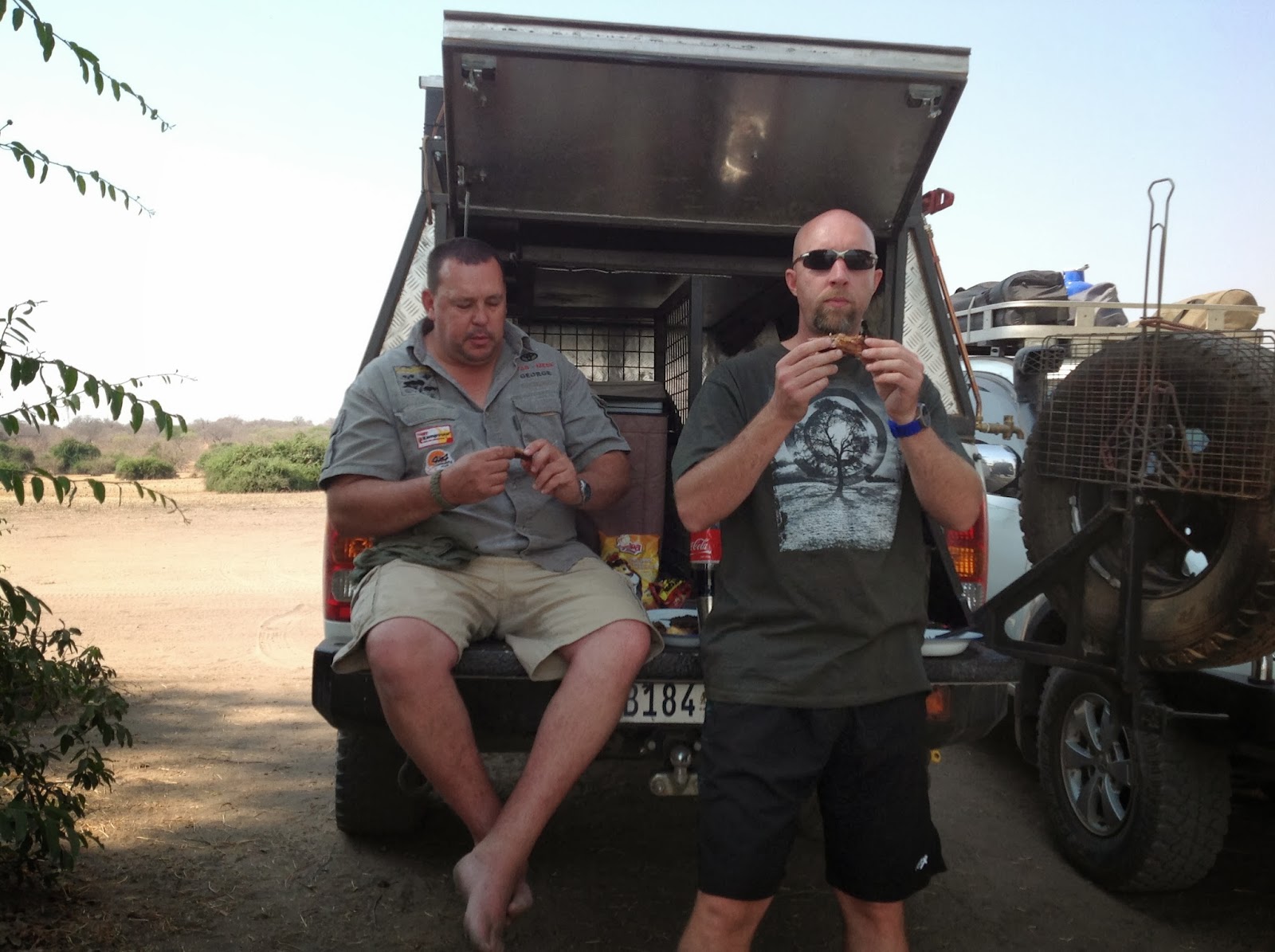 We stopped in no-mans land between the 2 borders to have our famous padkos that everybody bragged about. The eggs were cooked to perfection and Swartkat aka Nico was the only one brave enough to face them with me. We had chicken wings, frikadelle, mini sausage rolls, cheese-buns and sosaties for breakfast. The peace and tranquility of knowing we are actually on leave and heading into Botswana is indescribable and only the ones that has done it before would know what I’m talking about. With all our meat, veggies and other “contraband’ still intact we made our way to the Botswana side to do the clearance and customs formalities.