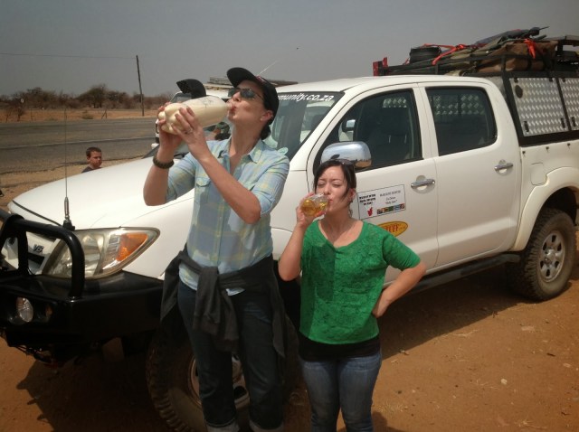 After stuffing ourselves we continued driving around until tracks for Africa showed up a elephant graveyard. Wow we thought until we reached it. I think there were 7 elephant bones in total. We all had grand visions of hundreds of ellie skeletons like in Lion King. We made a u-turn and on our merry way to the main road we stumbled into a fly camp setup for very rich oversees tourists. The look on their faces when we drove into their secluded camp was priceless. Jaw dropping stares all around. All we could do was giggle and wave, they did not think that we were funny.