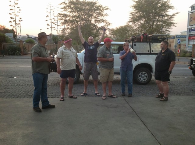 We all had a braai at Bulletjie’s mansion that night while poor Marlene and that’s not miss H but Bulletjie’s wife took it upon her to make 66 dozen Jafels. She deserved a medal for it. Ours was made for padkos the next day. We had a few drinks and the High Court was in session. Luckily for them the Judge was in a good mood and the penalties he handed out was so good that some people even charged themselves to get punished. Everybody headed to bed quite early because we faced a long and unknown road the next day.
