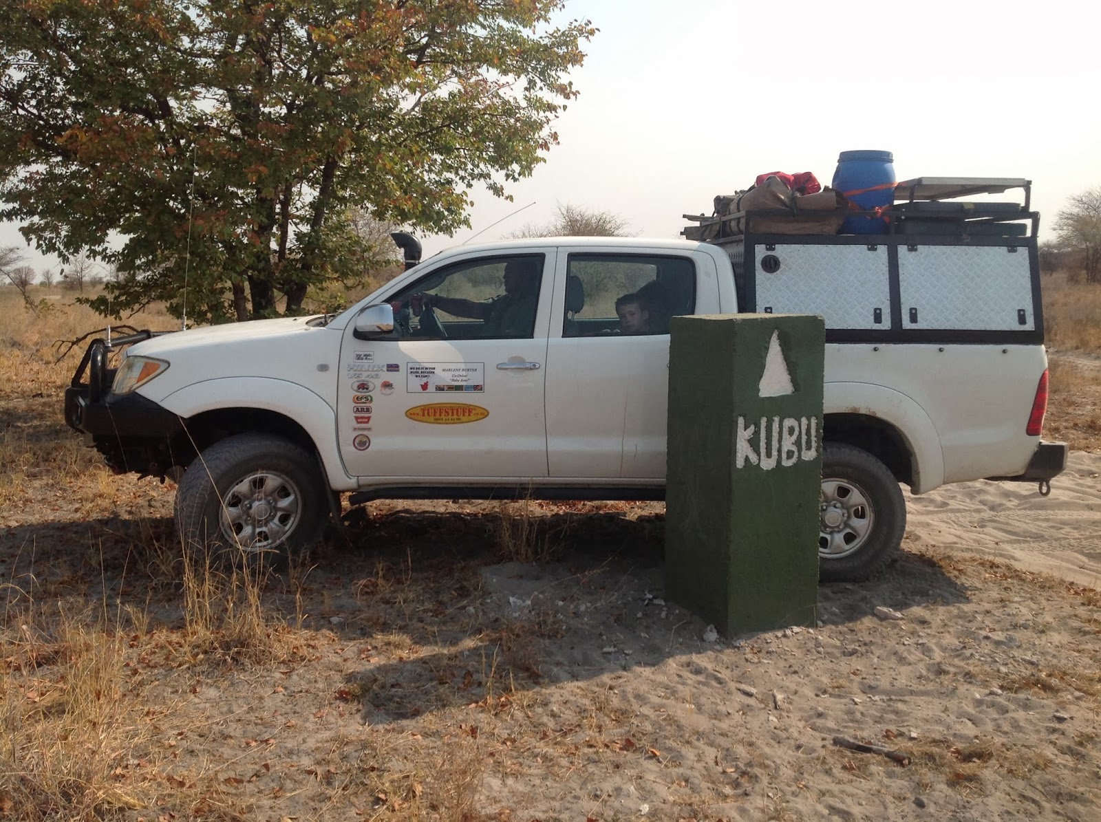 Speaking of the Vet fence…. With our arrival at it I saw that its just loosely tied to the pole. Someone before us have used this “gap” to pass on to Kubu which you could see in the distance by now. I asked the group what to do, either drive the very bad road around the fence (30 km) or go straight through (10 km) with an evil grin on my face cause I knew which option I would be taking. Upon seeing the smile on my face Sven just said I know that smile and it means trouble. After a quick discussion Myself, Sven, Nico and Bulletjie decided to take the short route and Ray the long one. We reached Kubu in 10 minutes and camp was already pitched and we were having the 3rd cold one when Ray eventually pitched up with news of a very bad road. That made us appreciate our decision. We paid our camp fees at a reduced rate organised for us by oom Piet the previous week and bought wood. Thanx to Tinus who made it there earlier than us, he secured a very nice camping spot.
