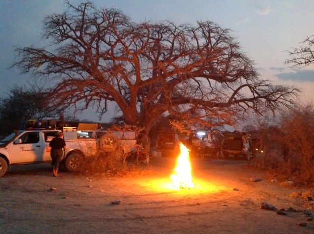 My famous upright ribbetjie braai. It just tastes better this way. We kept this fire going till late that night. The sunset was spectacular and the night sounds would make even the worst insomniac sleepy. Lions were heard in the early morning hours but they were very far off. We had a Lion or some kind of a beast in camp as well by the name of Toyota Eater. He’s snoring is scary enough to keep the whole of Botswana lion free.