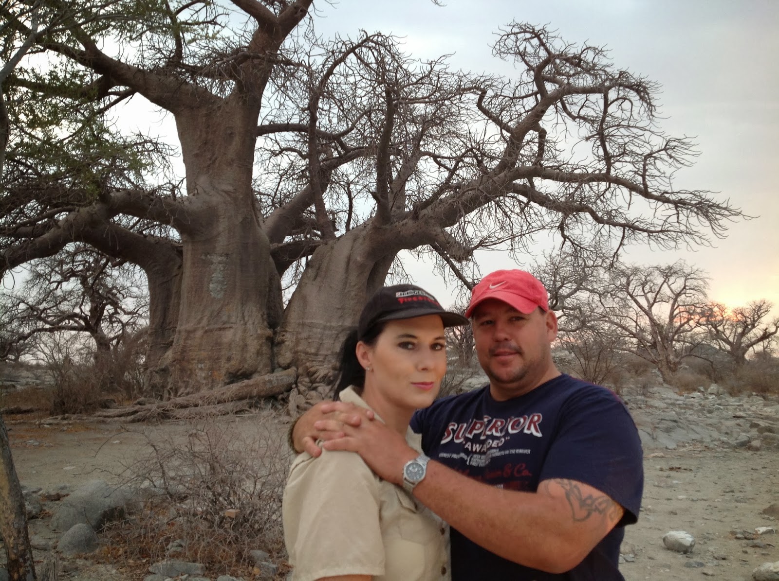 This is where we pitched camp for the night. What a awesome place surrounded with big old Baobab’s. There were so many wildlife around this campsite which included big herds of Ellies, Zebra’s, Roan, Impala and even a troop of baboons which chose the Baobab right next to us for making their home for the night which I’m sure they later regretted that night. We accidentally (or not) flashed a green laser in their tree and all hell broke loose. I can just imagine what went through those baboon brains. It was funny to hear them freak out at the new green monster in their tree. This was the most beautiful campsite and setting of the whole trip. Situated on top of a small hill we could see right around us. The kids picked up a dead heyana tail. Its seems that where ever we stop theres a dead heyana.