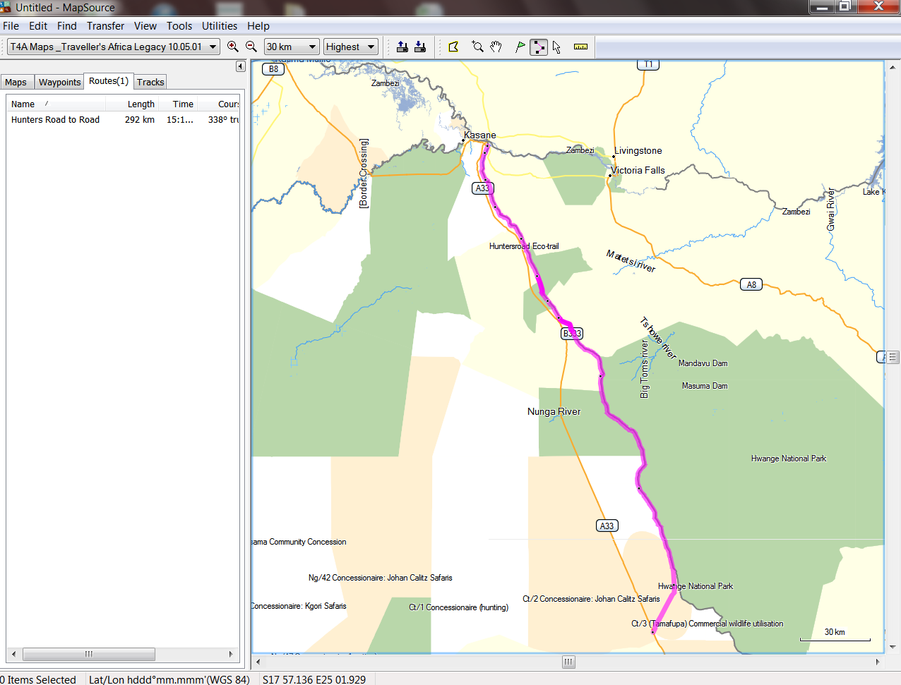 With Malan and Johan joining up from Francistown we fell in the road. This is where we stopped to try and access the Hunters Road but due to recent earth moving and dam building this access road were no longer available and we had to drive further north to reach a cut line.